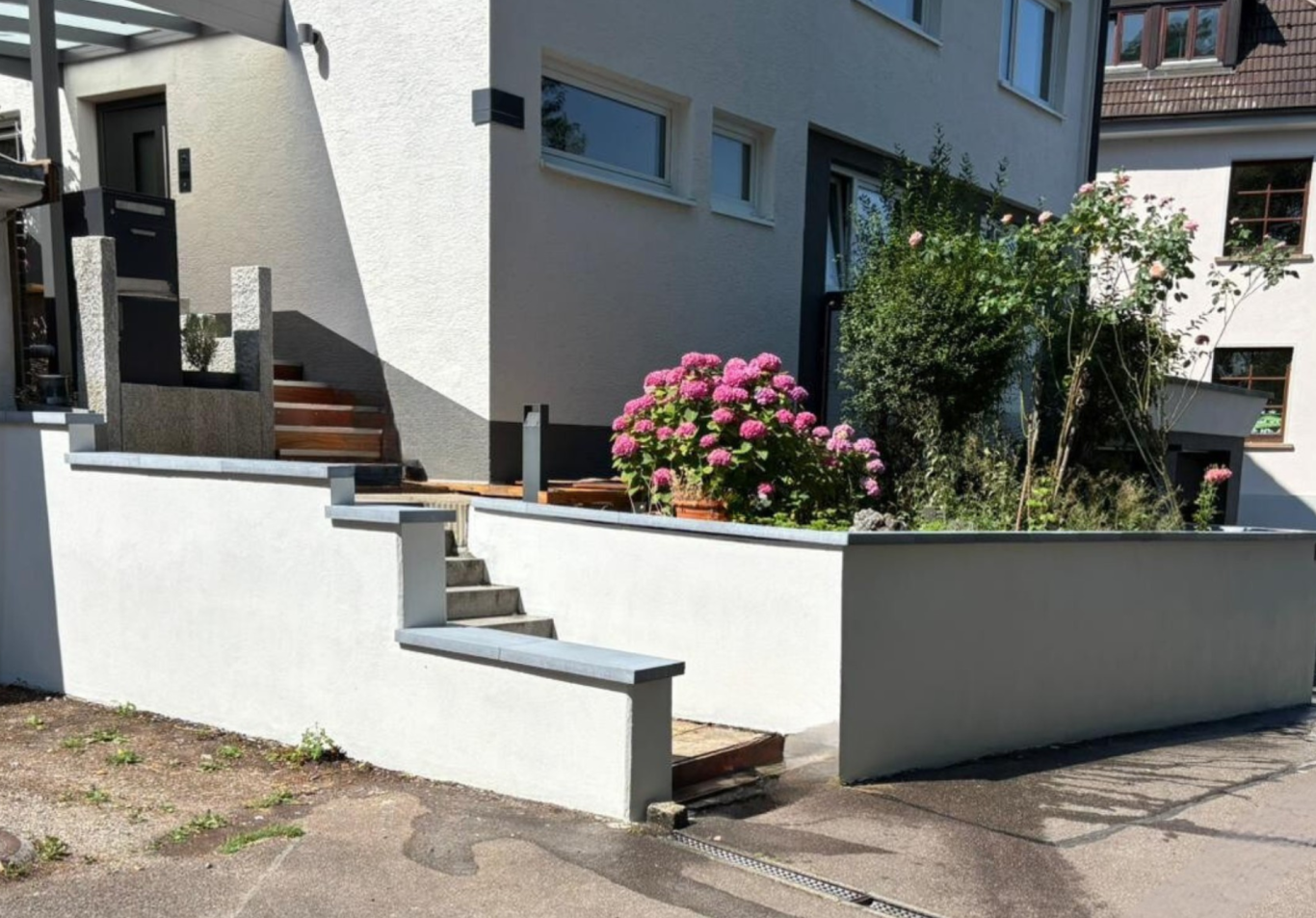 Im Rahmen dieses Projekts wurde ein geschädigter Gebäudesockel fachgerecht instandgesetzt. Die Bildreihe dokumentiert die einzelnen Arbeitsschritte – von der Schadensaufnahme über die vorbereitenden Maßnahmen bis hin zur sauberen, witterungsbeständigen Ausführung. Ein hochwertiges Ergebnis für dauerhaft geschützte Bausubstanz